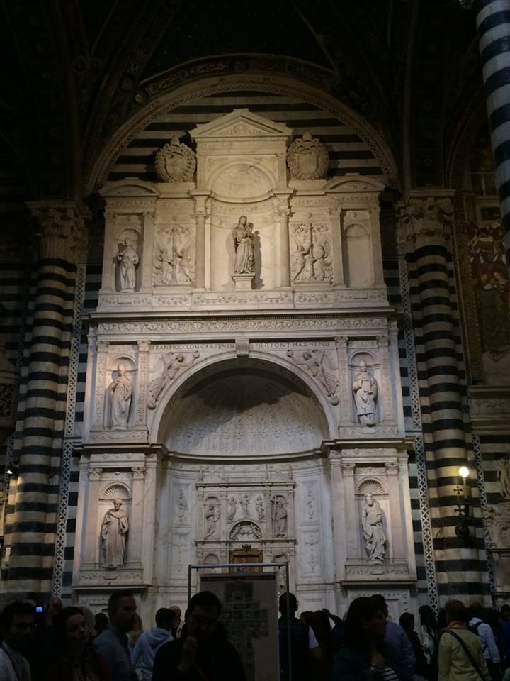 Wall of Michelangelo work in the cathedral in Siena.