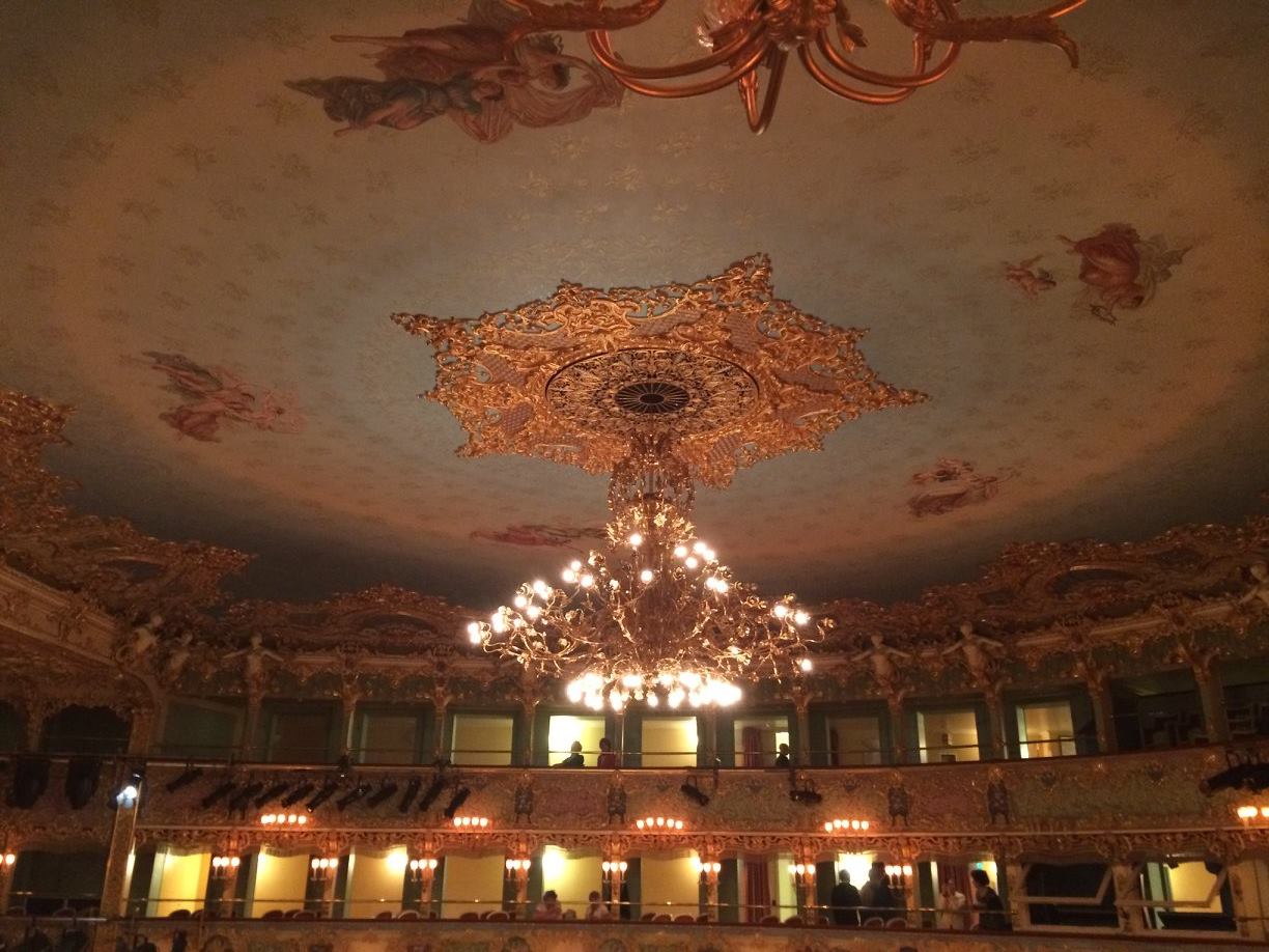 The ceiling in the Teatro al Fenice opera house in Venice.