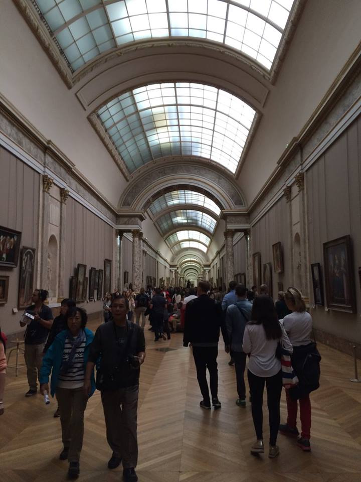 LONG hallway of paintings in the Louvre in Paris.