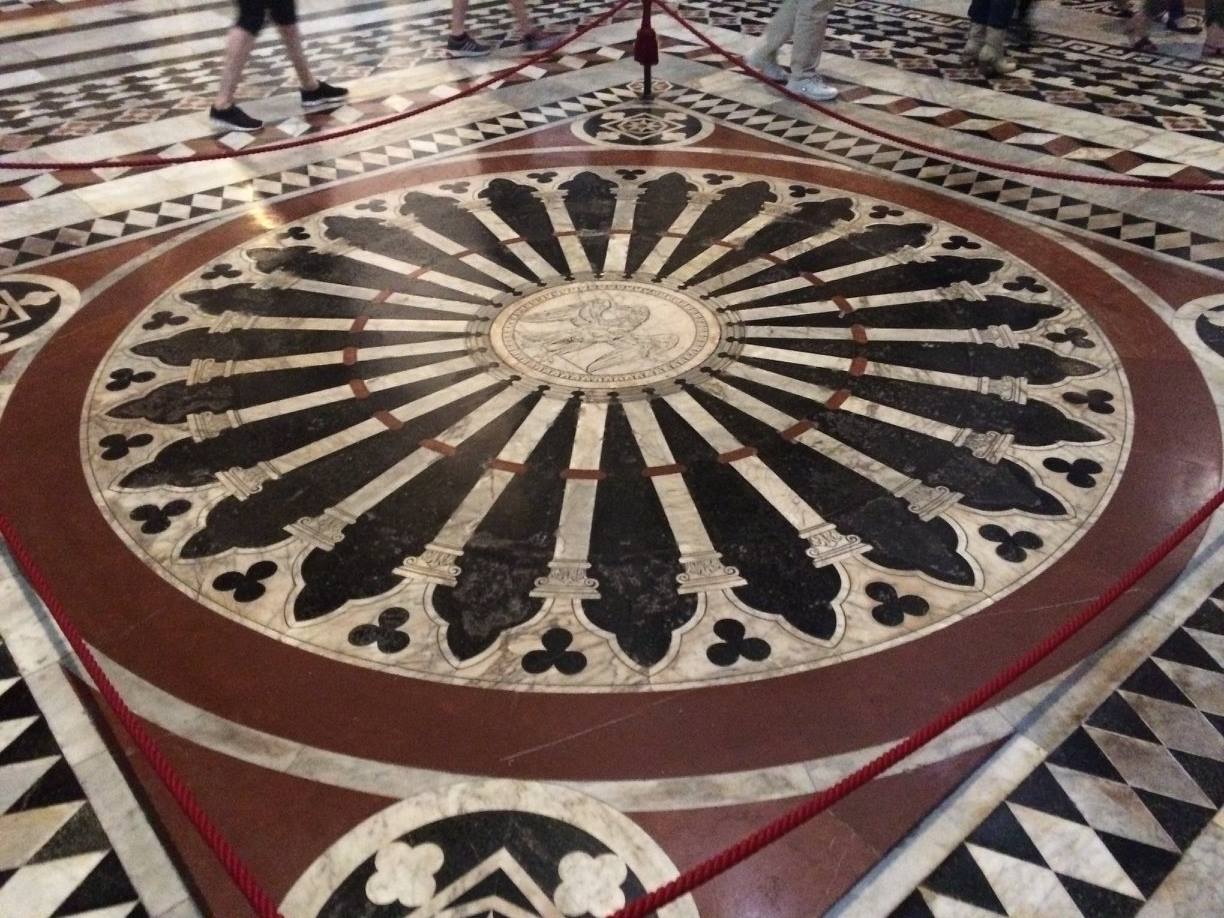 1 of 56 panels of marble mosaics on the floor of the cathedral in Siena. We were lucky enough to visit when they were all uncovered/displayed.