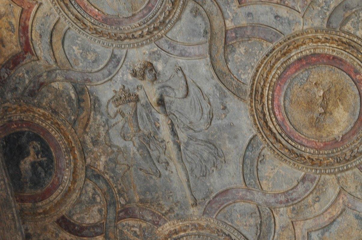 Preserved ceiling artwork in Pompeii.