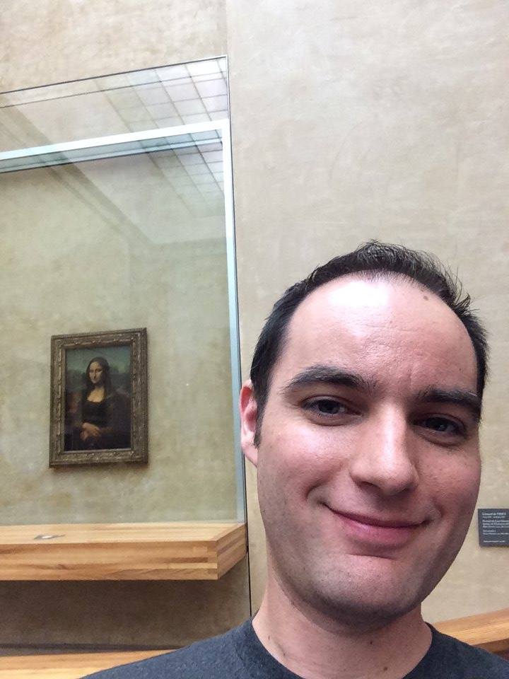 Ian getting a selfie with the lady, Mona Lisa.